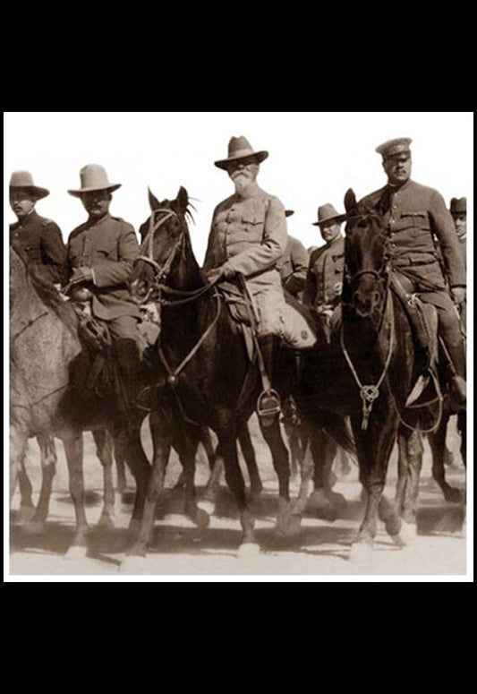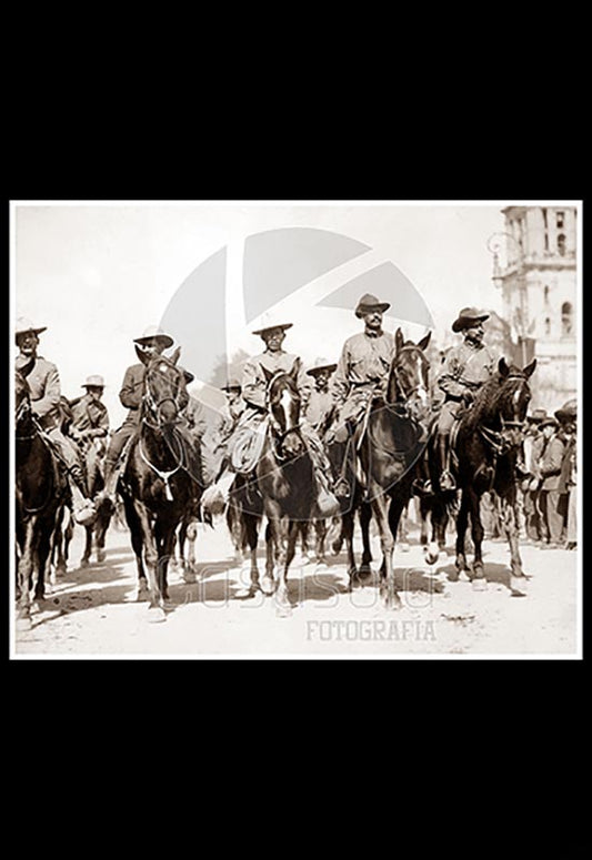 Gral. Obregón, Venustiano Carranza y Benjamín Hill a caballo