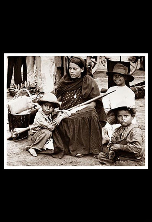 Soldadera y tres niños