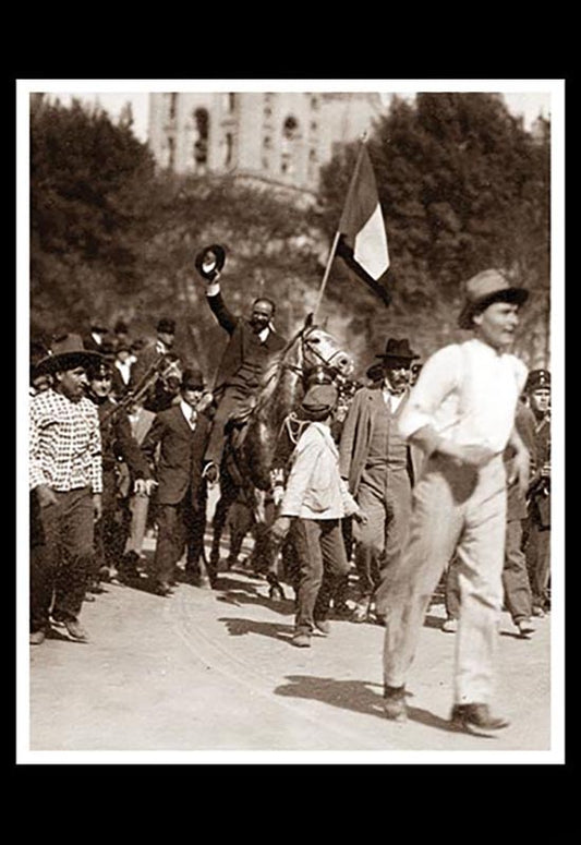 Presidente Francisco I. Madero escoltado por soldados durante la "Marcha de la Lealtad"