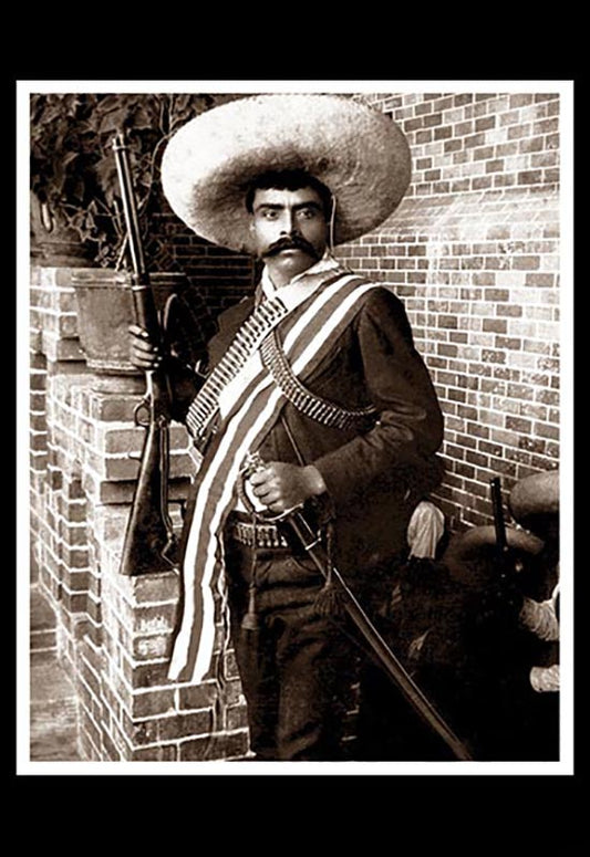 Gral. Emiliano Zapata con rifle y sable