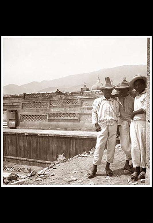 Indígenas afuera de un templo en Mitla, Oaxaca