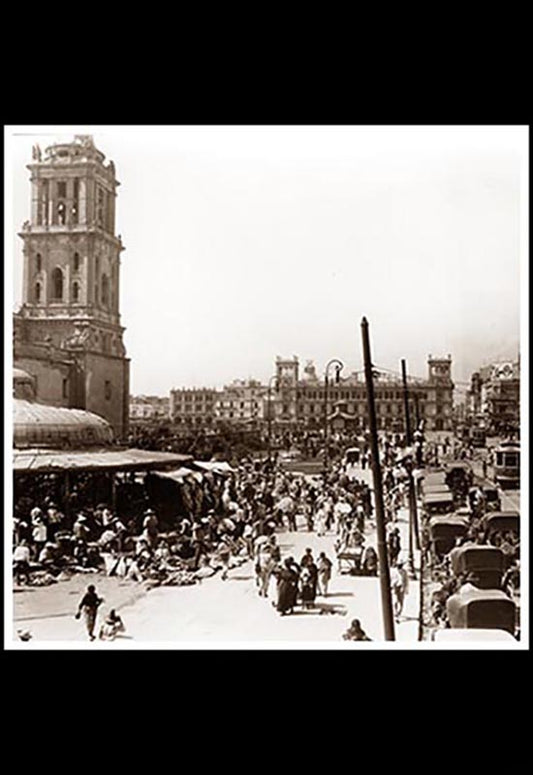 Palacio Nacional y el Zócalo arbolado y con jardines