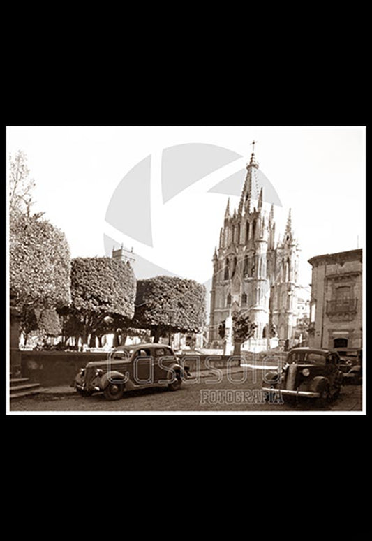 La Catedral a nivel de calle con autos y tranvías en primer término