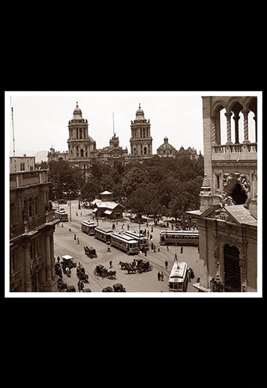 Vista del Zócalo arbolado y la estación de tranvías en primer término