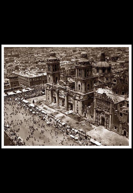 Vista del Zócalo y la Catedral desde un avión