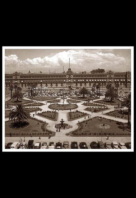 Palacio Nacional y el Zócalo arbolado y con jardines
