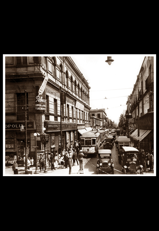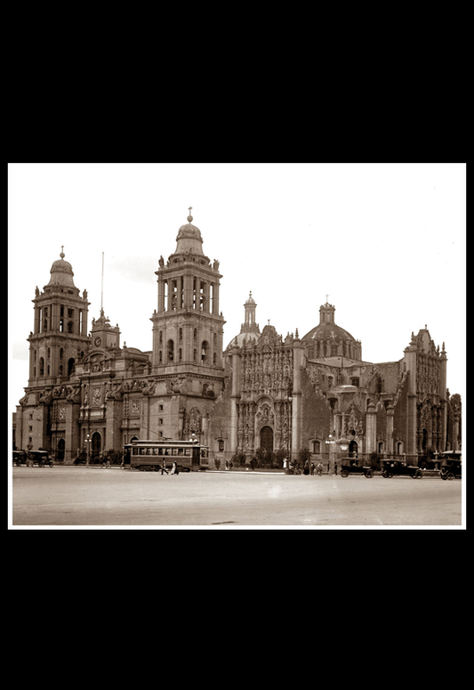 La Catedral a nivel de calle con autos y tranvías en primer término